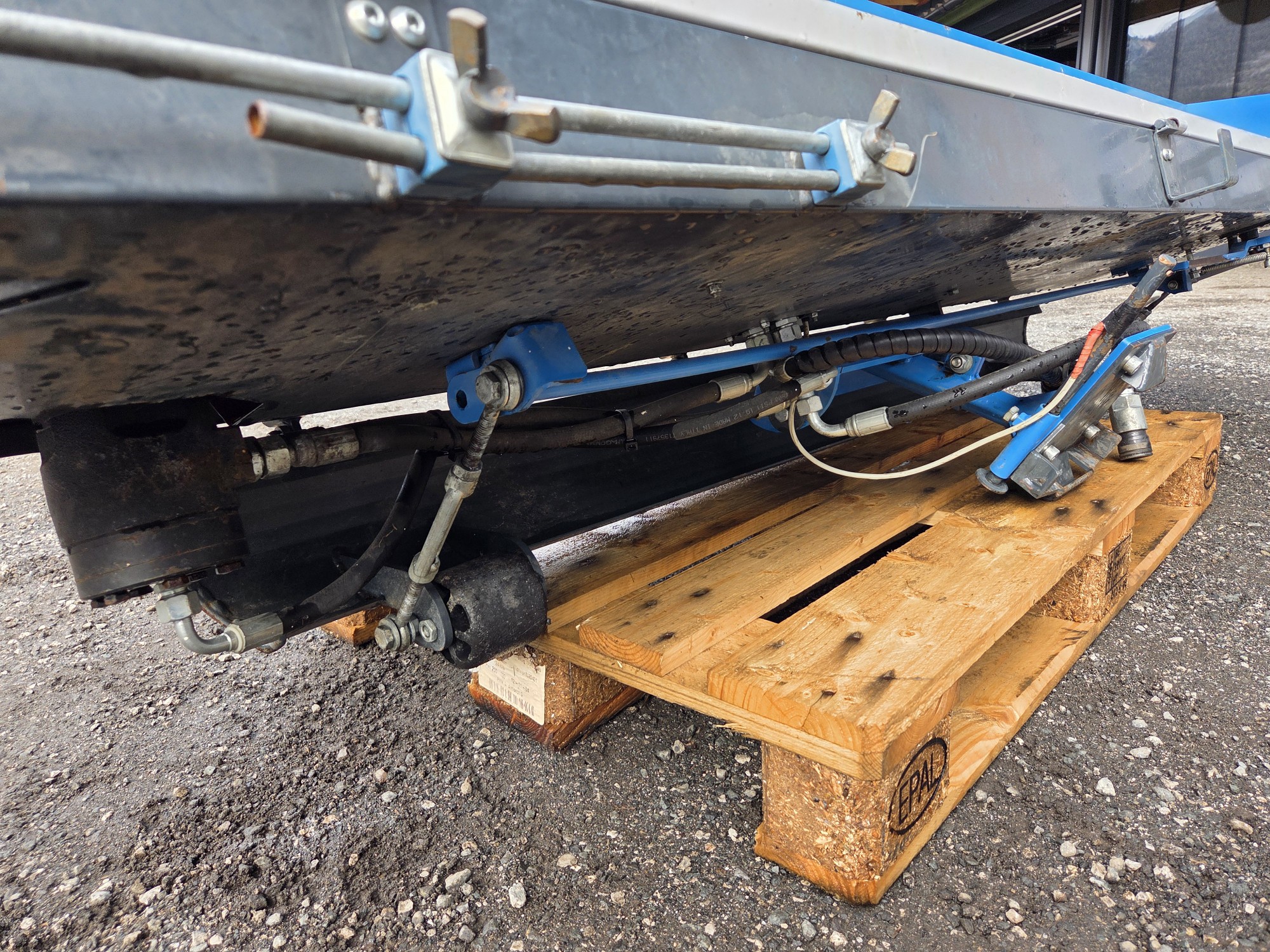 *Die Arbeitshöhe wird über eine Gleitsohle eingestellt, für die Strassenfahrt wird mit einem Hebel die Gleitsohle angehoben, so dass die Maschine leichtgängig auf Rollen läuft.
