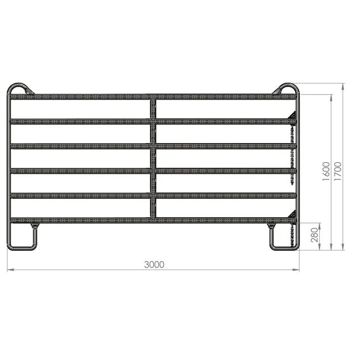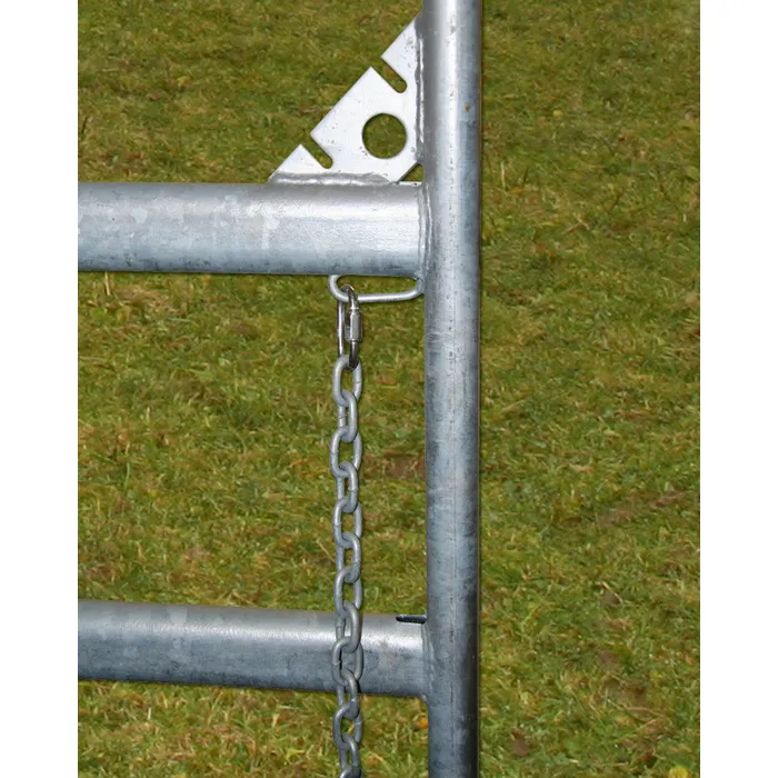 Die Elemente verfügen über eine Gesamthöhe von 1,70 m inklusive Sicherheits-Ausprägung. Der praktische Schnell-Kettenverschluss ermöglicht ein rasches und sicheres Verbinden mehrerer Panele. Die massive Ausführung sorgt für hohe Stabilität im täglichen Einsatz bei Rindern, Pferden und anderen Nutztieren.