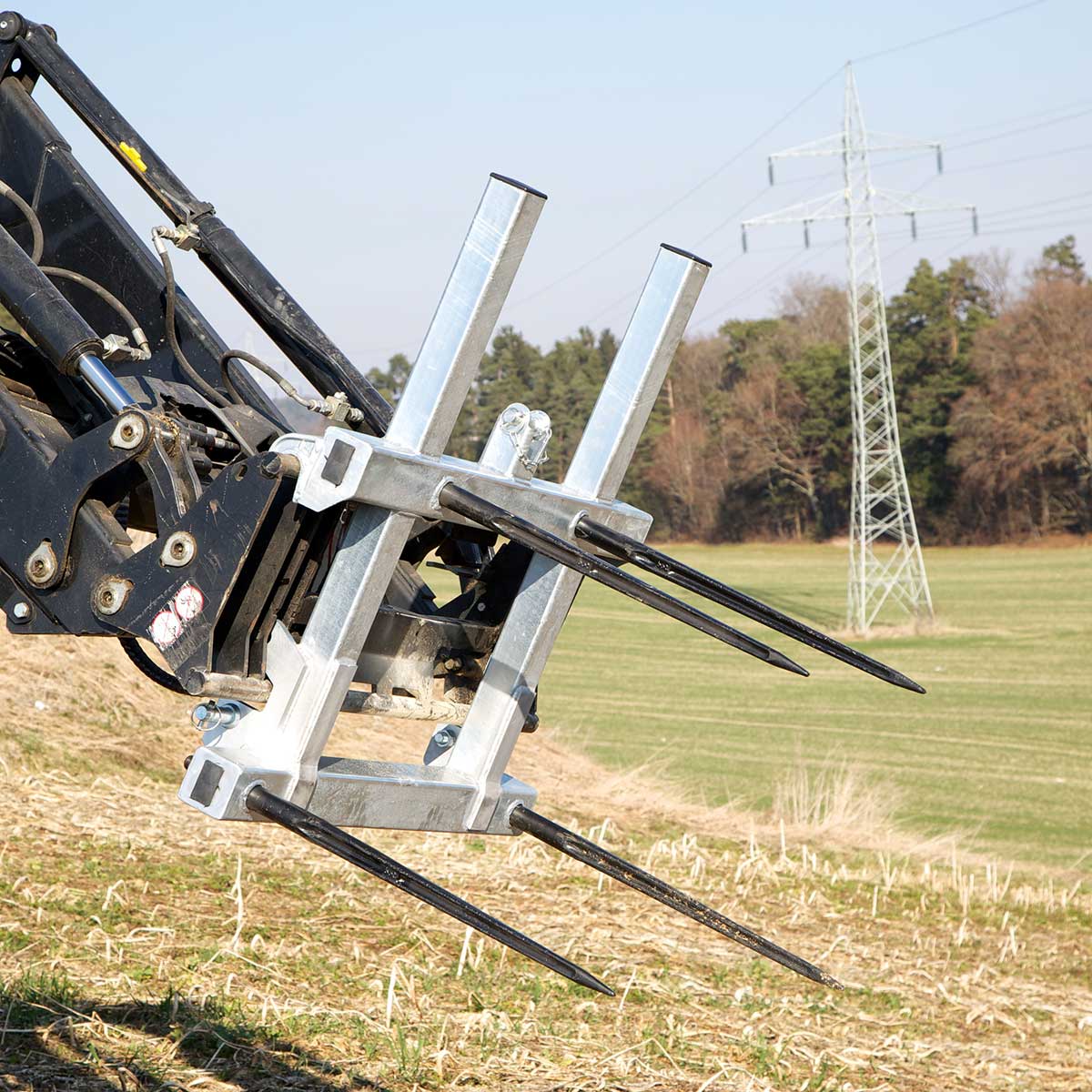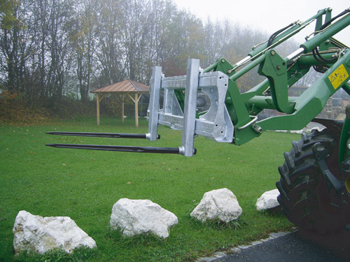Unsere Ballengabeln ermöglichen das mühelose Aufnehmen und Transportieren von Ballen. Die Gabelrohre sind abnehmbar, und durch eine Umlenkung wird ein gleichmäßiges Öffnen beider Rohre gewährleistet.