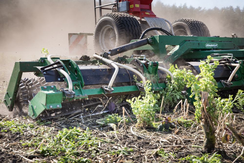 - In Kombination mit einer düvelsdorf Säeinrichtung kann die TERRA.ROLLER expert mit Messerwalze noch effizienter eingesetzt werden, um Zwischenfrüchte in den Boden einzuarbeiten und anzudrücken.